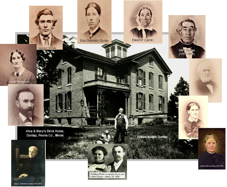 The Dunlap Collection includes correspondence, photographs, family trees, histories, research, and original sources such as wills and birth, death, marriage, land, and pension records. The collection also contains Surnames and associated families.